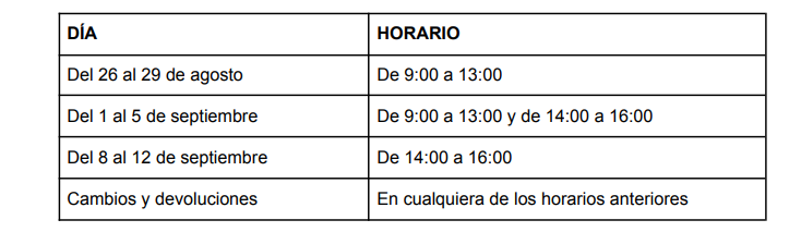 La venta presencial de uniformes se realiza en el edificio de Primaria (C/ Otero y Delage, 105) con el siguiente horario: